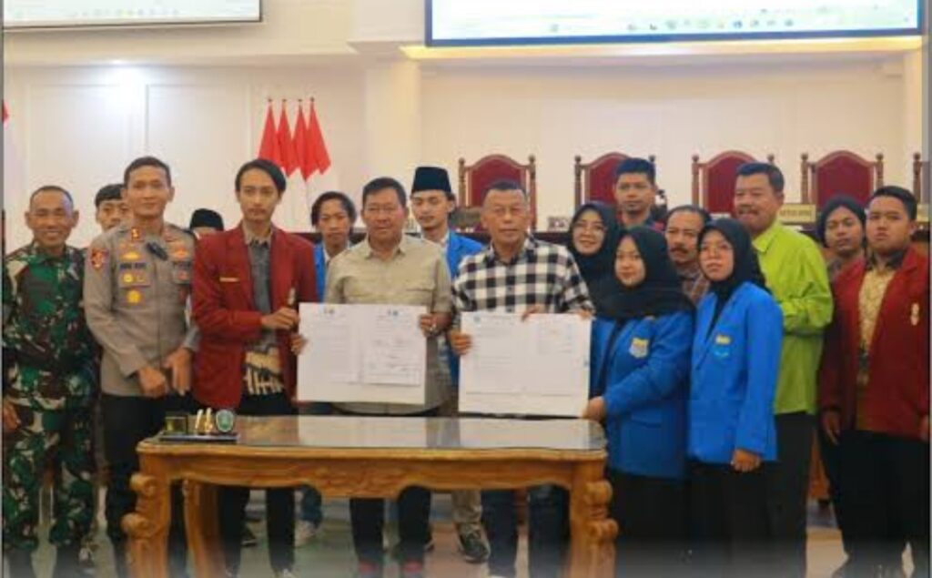 Audensi ditutup dengan penandatanganan berita acara sebagai bentuk kesepakatan antara Forkopimda Ponorogo dan organisasi mahasiswa PMII serta IMM. (adv/el)