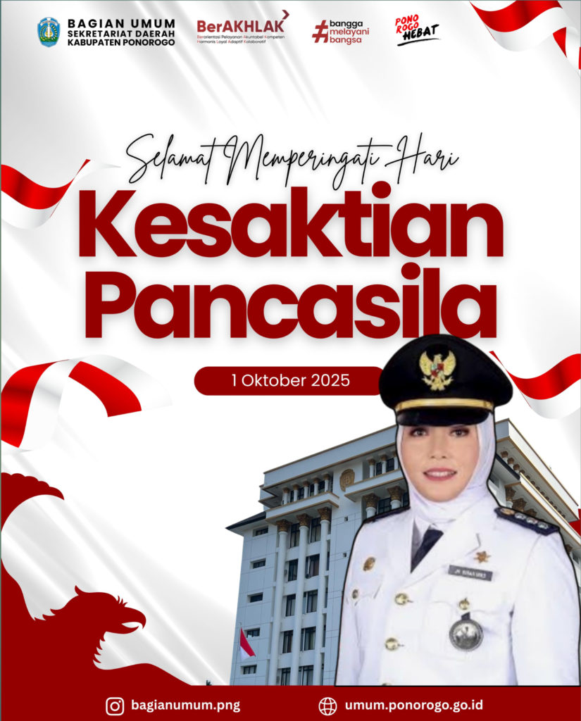 BAGIAN UMUM SEKRETARIAT DAERAH KABUPATEN PONOROGO MENGUCAPAKAN SELAMAT MEMPERINGATI HARI KESAKTIAN PANCASILA 1 OKTOBER 2025