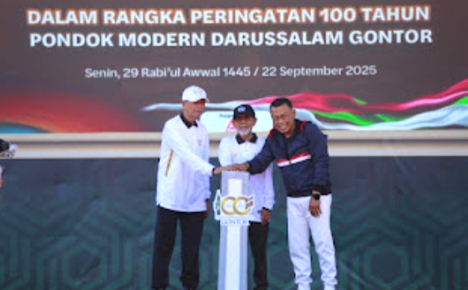 PONOROGO-Rangkaian peringatan 100 tahun Pondok Modern Darussalam Gontor (PMDG) berlangsung meriah dan penuh semangat. Salah satu agenda besarnya adalah Olimpiade Olahraga 100 Tahun PMDG yang resmi dibuka oleh Bupati Ponorogo Sugiri Sancoko, Senin (22/9/2025), di Lapangan Sepak Bola PMDG.