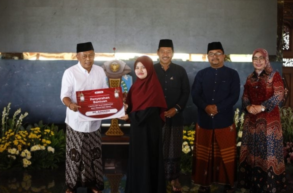Pada peringatan Hari Santri 2025, Kang Bupati Sugiri Sancoko menyerahkan bantuan alat kesehatan (alkes) sederhana kepada 32 pondok pesantren, Selasa (20/10/2025), di Pendopo Agung Kabupaten Ponorogo.