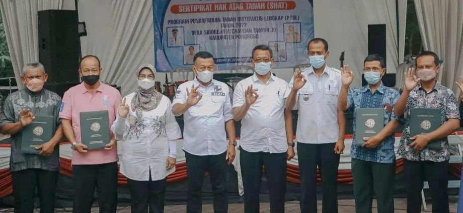 PONOROGO- Menjamin kepastian dan perlindungan hukum atas tanah masyarakat, Bupati Ponorogo bersama Badan Pertanahan Nasional menyerahkan Sertifikat Hak Atas Tanah (SHAT) sebanyak 500 penerima melalui Program PTSL (Pendaftaran Tanah Sistematis Lengkap). Dalam sambutanya, Bupati Ponorogo Sugiri Sancoko mengajak masyarakat untuk senantiasa berkolaborasi agar segala program yang direncanakan oleh pemerintah mampuContinue Reading