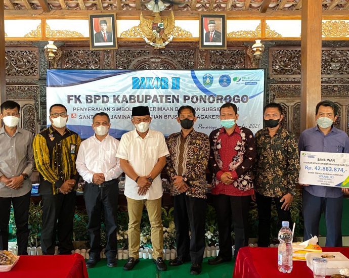 PONOROGO- Bupati Ponorogo, Sugiri Sancoko menyerahkan bantuan kepada para keluarga anggota Badan Permusyawaratan Desa (BPD) yang meninggal dunia, Minggu (7/11). Penyerahan bantuan secara simbolis itu berupa jaminan kematian BPJS Ketenagakerjaan kepada para ahli waris atau keluarga yang digelar di Pendopo Balai Desa Nongkodono. Hadir dalam kegiatan tersebut, Bupati Ponorogo, WakilContinue Reading
