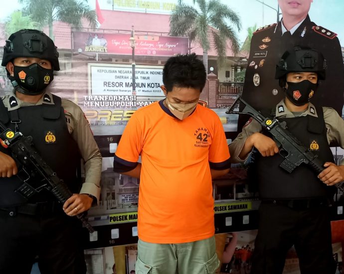 MADIUN- Pria pengangguran yang mengaku baru menjalani bisnis haram berjualan narkotika jenis sabu-sabu, ekstasi dan ganja selama lima bulan ini ditangkap polisi di Jalan Tawang Krida, Kelurahan Tawangrejo, Kecamatan Kartoharjo, Kota Madiun, saat akan meranjau pesanan. Adalah Novi Lukianto alias Kentrung (32), warga Kelurahan Patihan, Kecamatan Manguharjo, Kota Madiun ini,Continue Reading